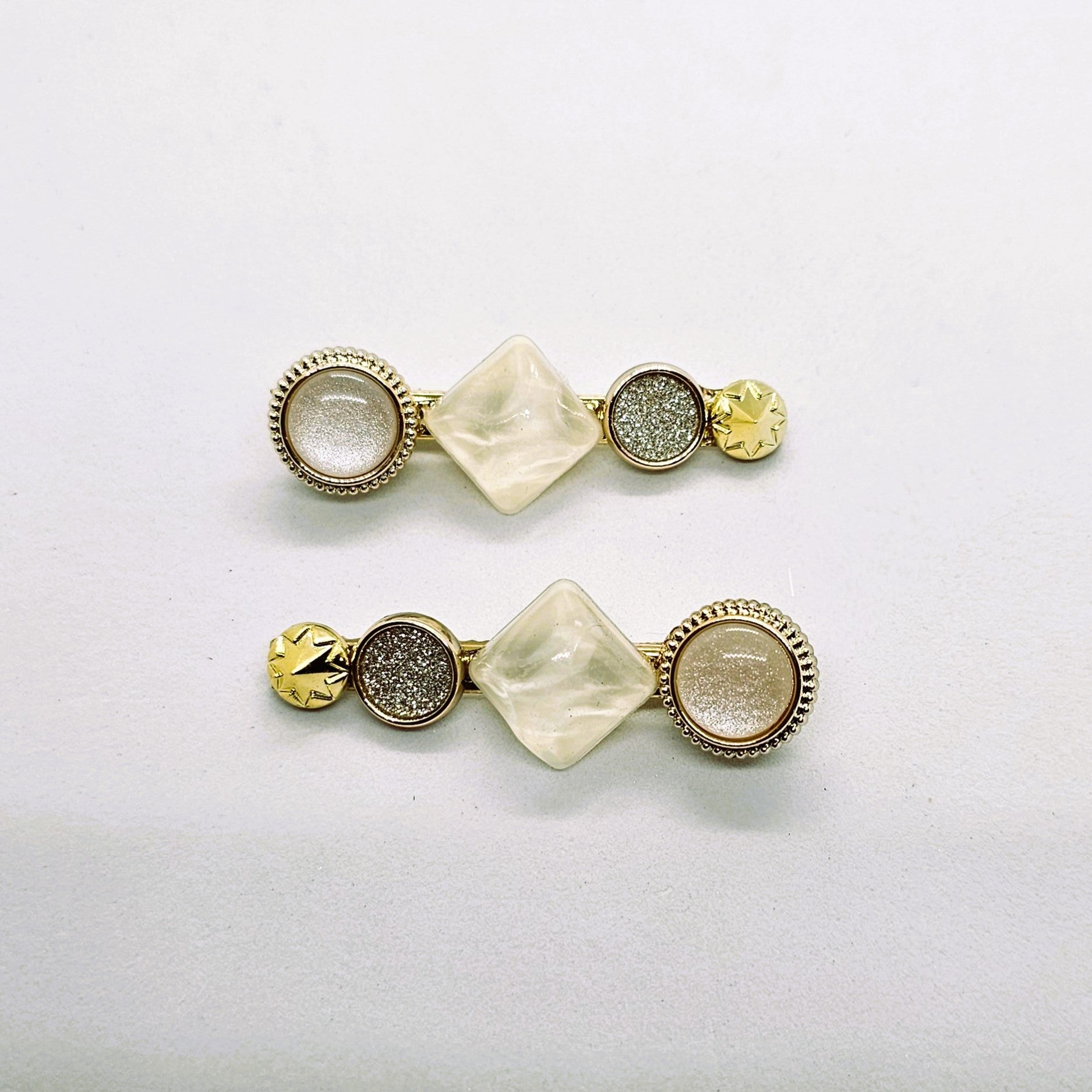 Azure Pearl Gold & Resin Alligator Clip - Pair