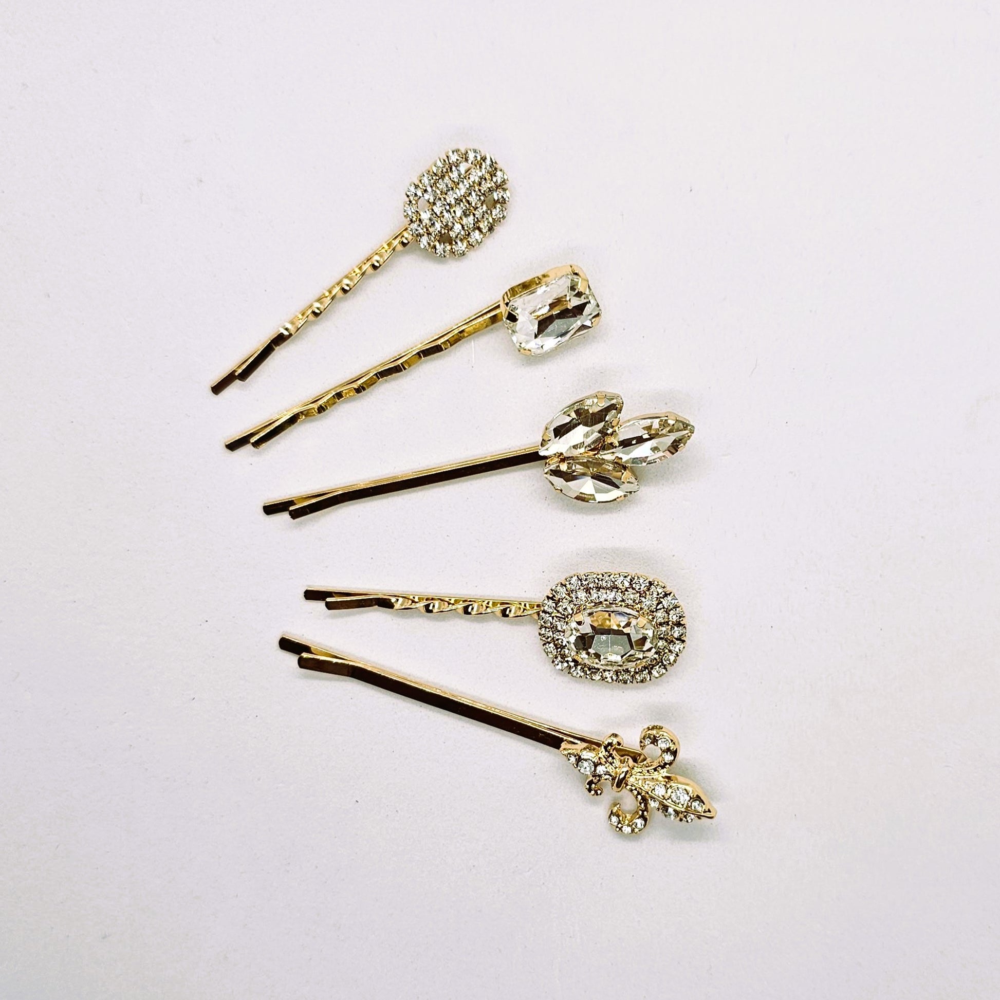 Fleur Gold Crystal & Diamante Hair Slide - Pair